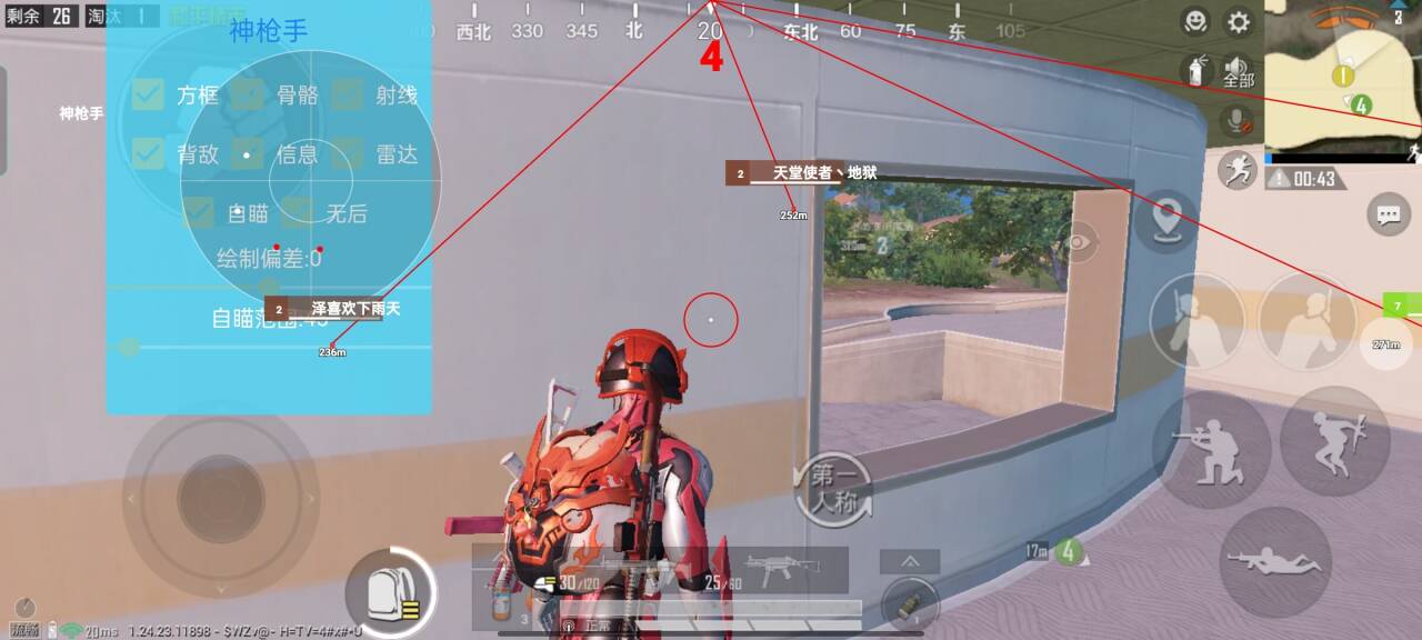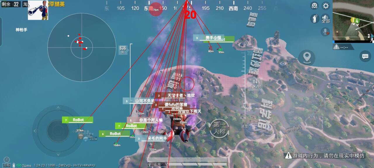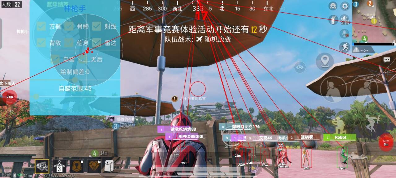 方框射线-骨骼距离-名字血量-人数背敌-雷达方框